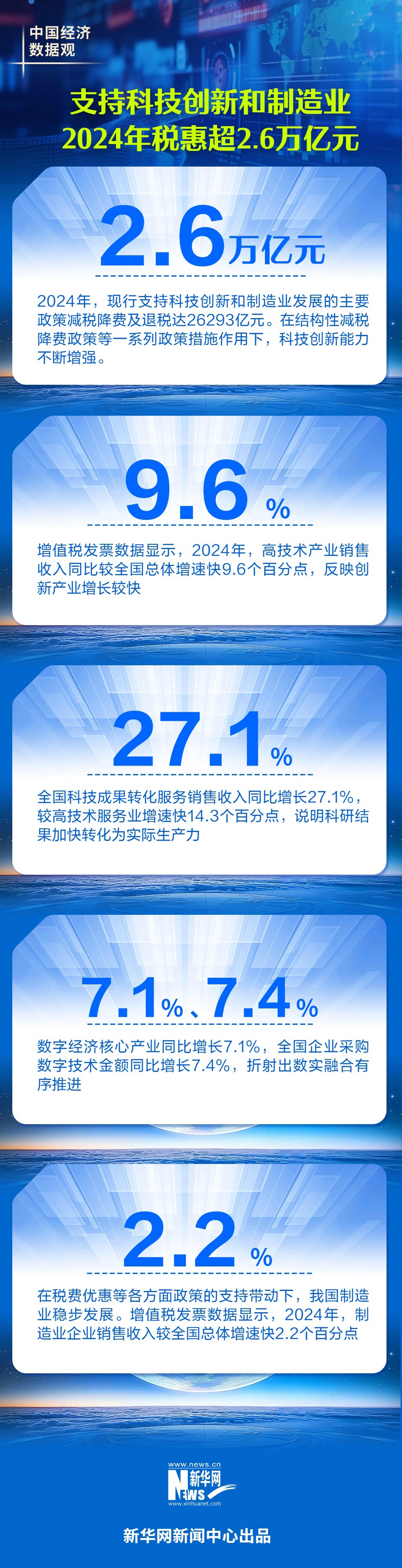 中國(guó)經(jīng)濟(jì)數(shù)據(jù)觀|支持科技創(chuàng)新和制造業(yè) 2024年減稅降費(fèi)及退稅超2.6萬(wàn)億元
