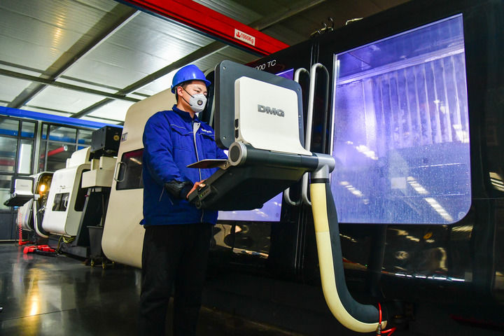 圖為1月7日在山東省淄博市博山區域城鎮山東博科真空科技有限公司,工人在操作數控機床。新華社記者朱崢 攝