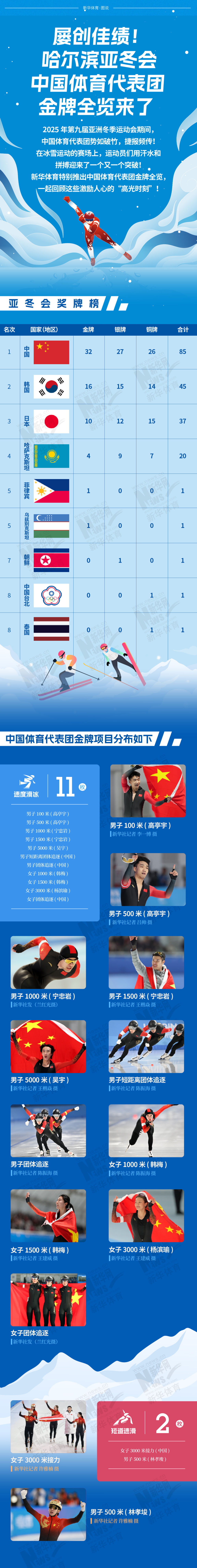 長圖|屢創佳績!哈爾濱亞冬會中國體育代表團金牌全覽來了!