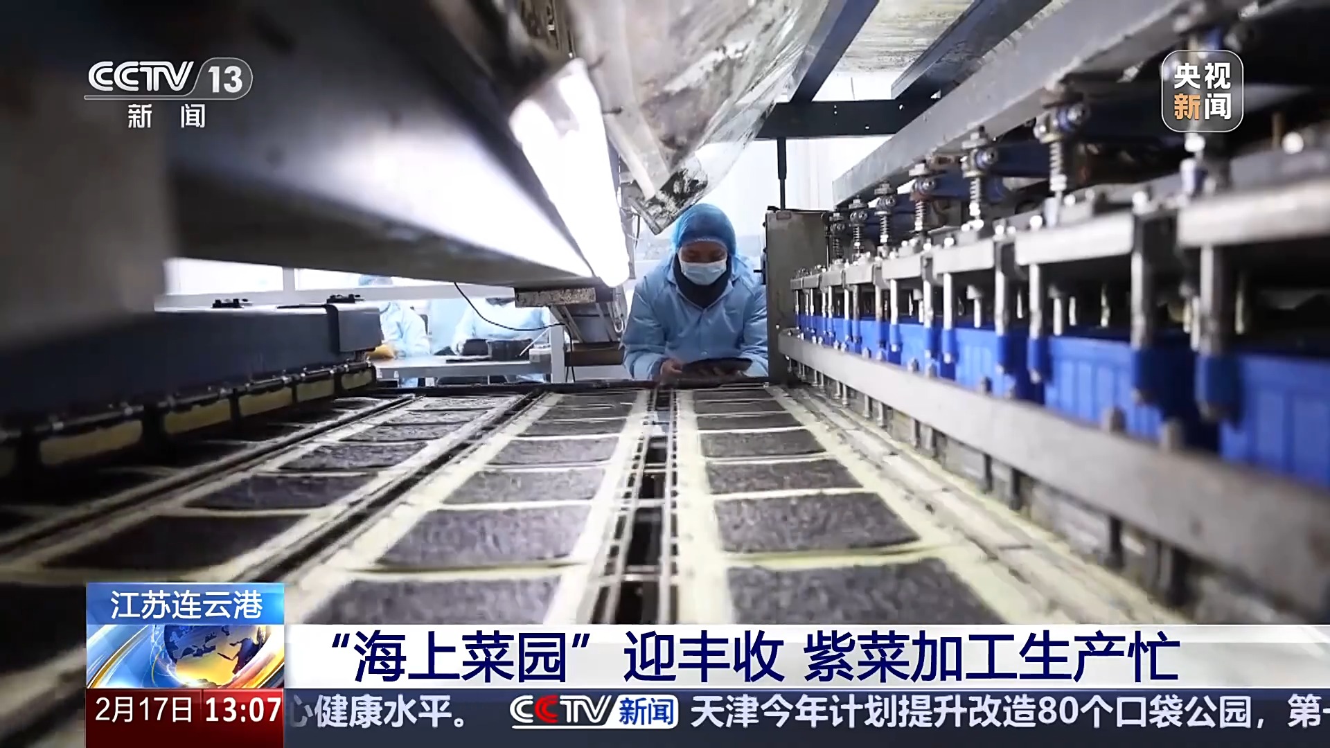 除了鮮食,這些收割上來的紫菜大部分會被迅速運往產業園,進行統一加工,一張張紫菜經過塑形后,銷往全國各地,甚至是海外。