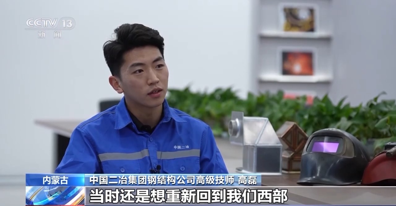 中國二冶集團鋼結構公司高級技師 高磊:我是從包頭學到的本領、學到的技術,當時還是想重新回到我們西部,回到內蒙古。在這種條件下,通過專業性的技術人才的引進,對我也是一個更好的挑戰和一個更好的機遇和平臺。
