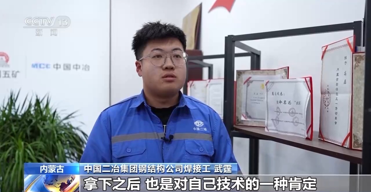 中國二冶集團鋼結構公司焊接工 武霆:心里還是很有成就感的。拿下之后也是對自己技術的一種肯定,自己提升技術也是比較好的一個渠道。