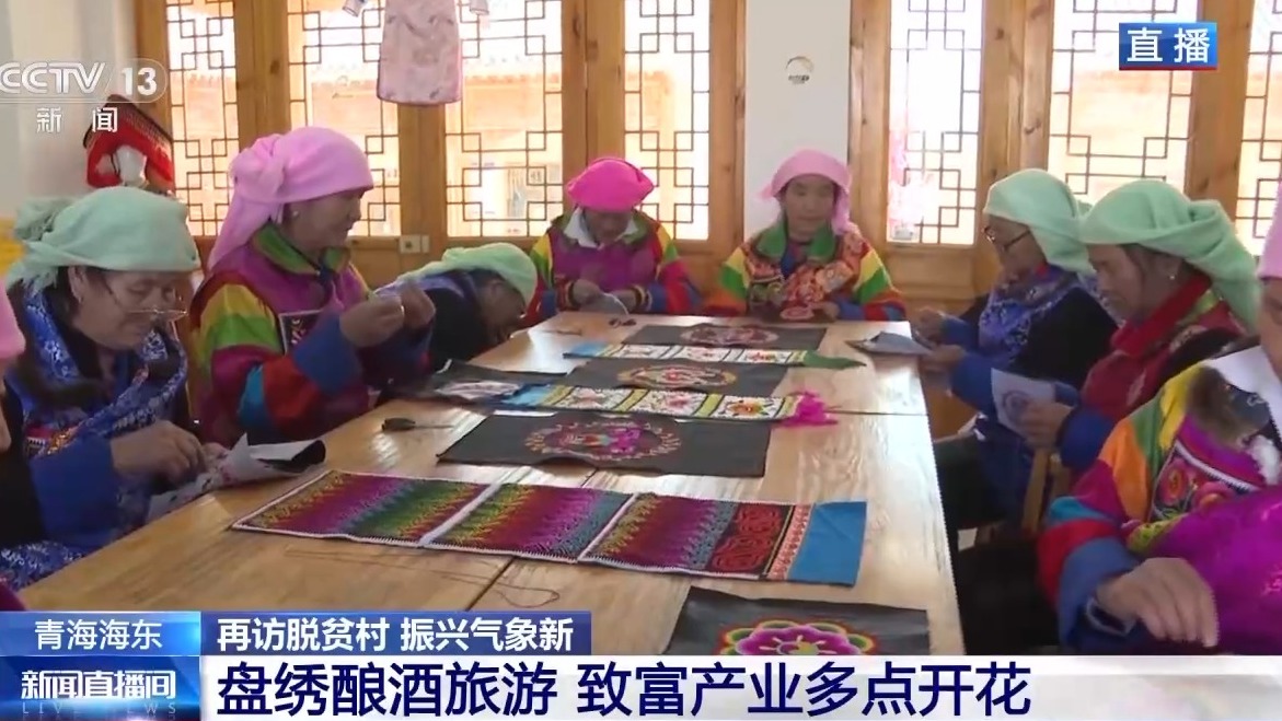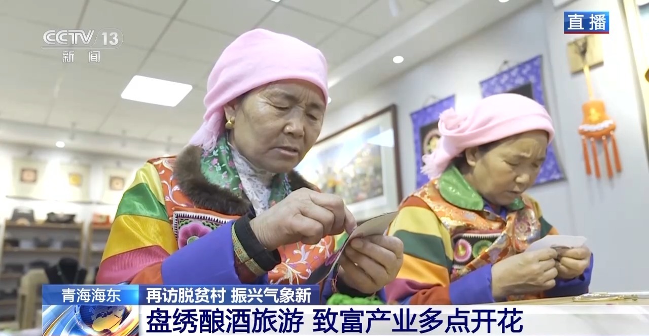不僅是光伏發電,近幾年,村里因地制宜發展起土族盤繡、古法釀酒、鄉村旅游等多個致富產業,還通過電商直播帶貨平臺,推廣村里自產的青稞酒、中藥材等農特產品,讓村民實現就地就近就業的同時,也讓產品的銷路越走越遠。
