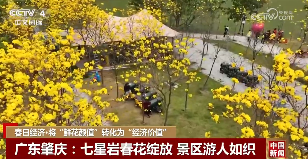 在廣東肇慶七星巖景區(qū),宮粉紫荊、黃花風鈴木、櫻花、禾雀花等競相綻放。在禾仙島上的黃花風鈴木林正值盛放期,金燦燦的花冠與星湖碧波相映成趣。景區(qū)推出門票優(yōu)惠等舉措,吸引游客來賞花。