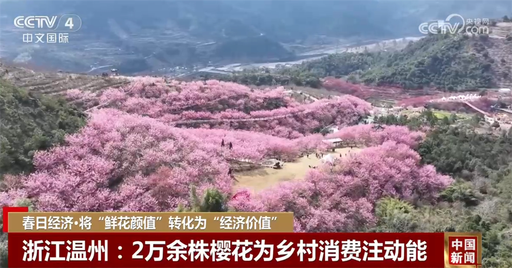 浙江省永嘉縣的溫州櫻花園占地3600畝,已開發(fā)利用1700多畝,種植了2萬余株櫻花,品種涵蓋臺灣牡丹櫻、紅粉佳人櫻等數十個品種。盛開的櫻花吸引了游客,也帶動了當地餐飲、住宿、旅游、交通等服務消費快速增長,自2月13日開園以來,櫻花園日均接待游客近3000人次,周末更是突破1萬多人。