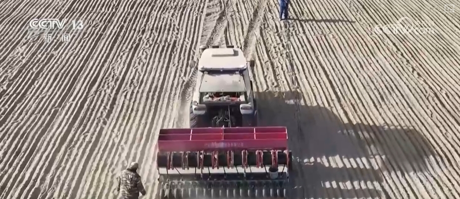 近日,甘肅酒泉金塔縣的10萬畝小麥開始播種。當地搶抓農時,推廣機械化手段,助力農業生產。