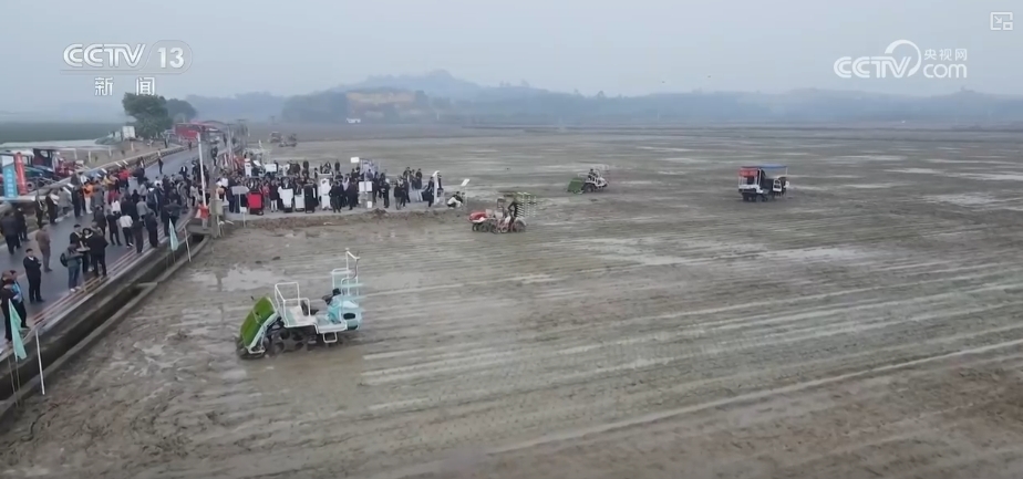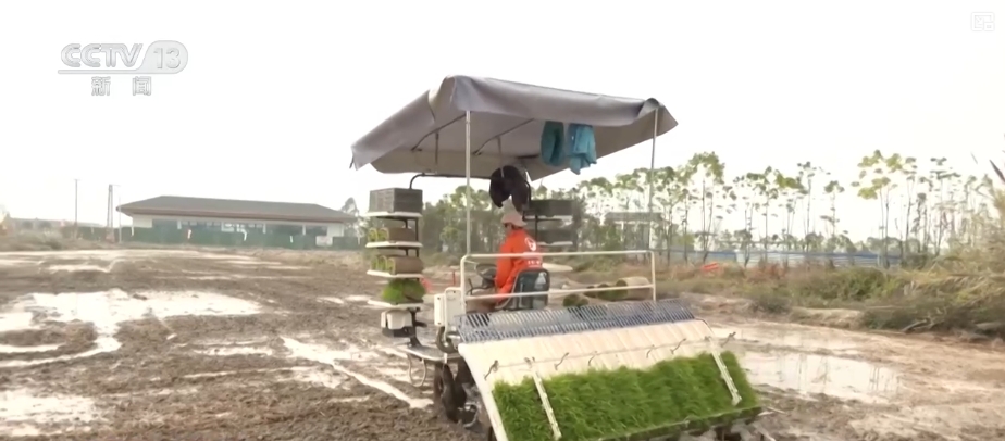 在廣東佛山,春播春耕作業正在進行。2025年,種植戶利用無人駕駛插秧機等設備,高效完成早稻插秧播種。