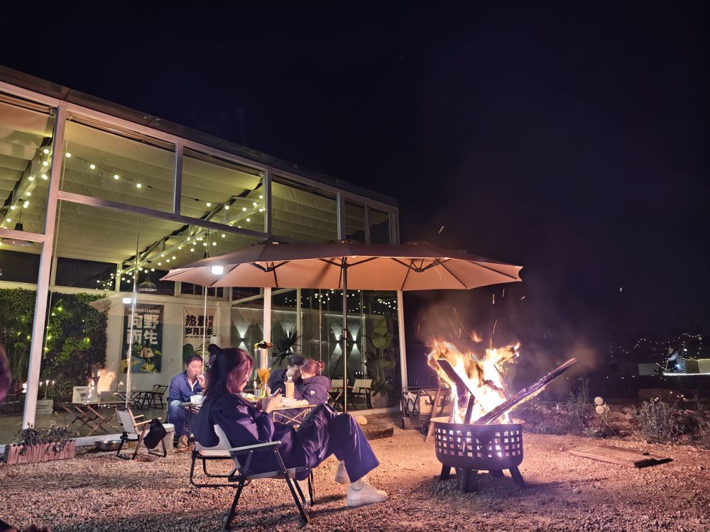 客人在星月手作農(nóng)場(chǎng)欣賞篝火。新華社發(fā)