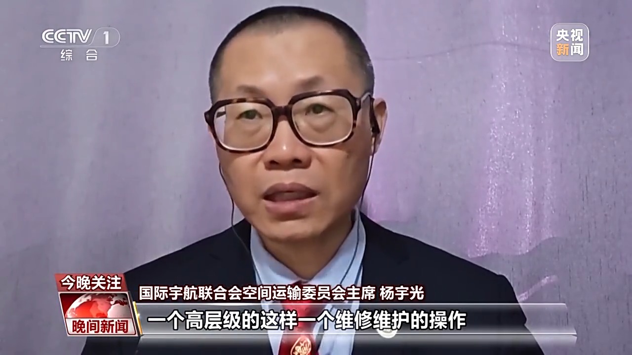 國際宇航聯合會空間運輸委員會主席 楊宇光:我們已經開始對空間站高層級的維修維護操作,同時這些活動本身也在為我們未來更復雜、更具挑戰性的出艙活動奠定基礎。
