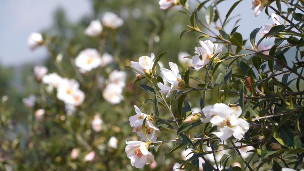 幾場(chǎng)春雨過(guò)后,基地油茶花競(jìng)相綻放,在春日暖陽(yáng)的照耀下熠熠生輝,一幅“千朵萬(wàn)朵壓枝低”的絢麗美景鋪展眼前。