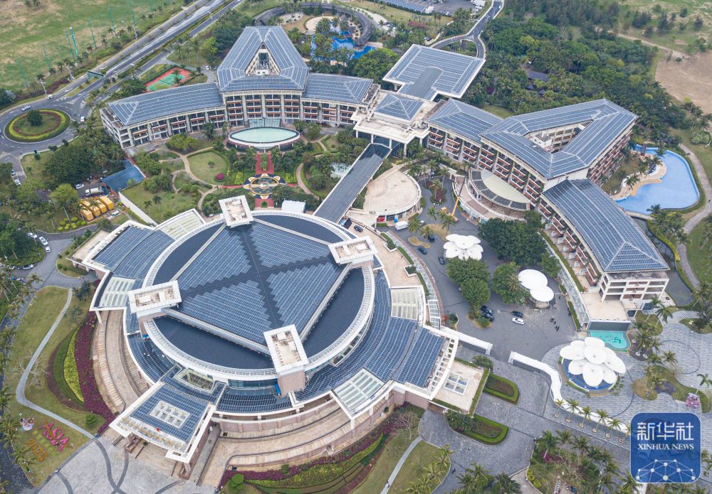 ↑ 這是在博鰲零碳示范區(qū)拍攝的博鰲亞洲論壇新聞中心及配樓屋頂?shù)墓夥O備(無人機照片,3月16日攝)。