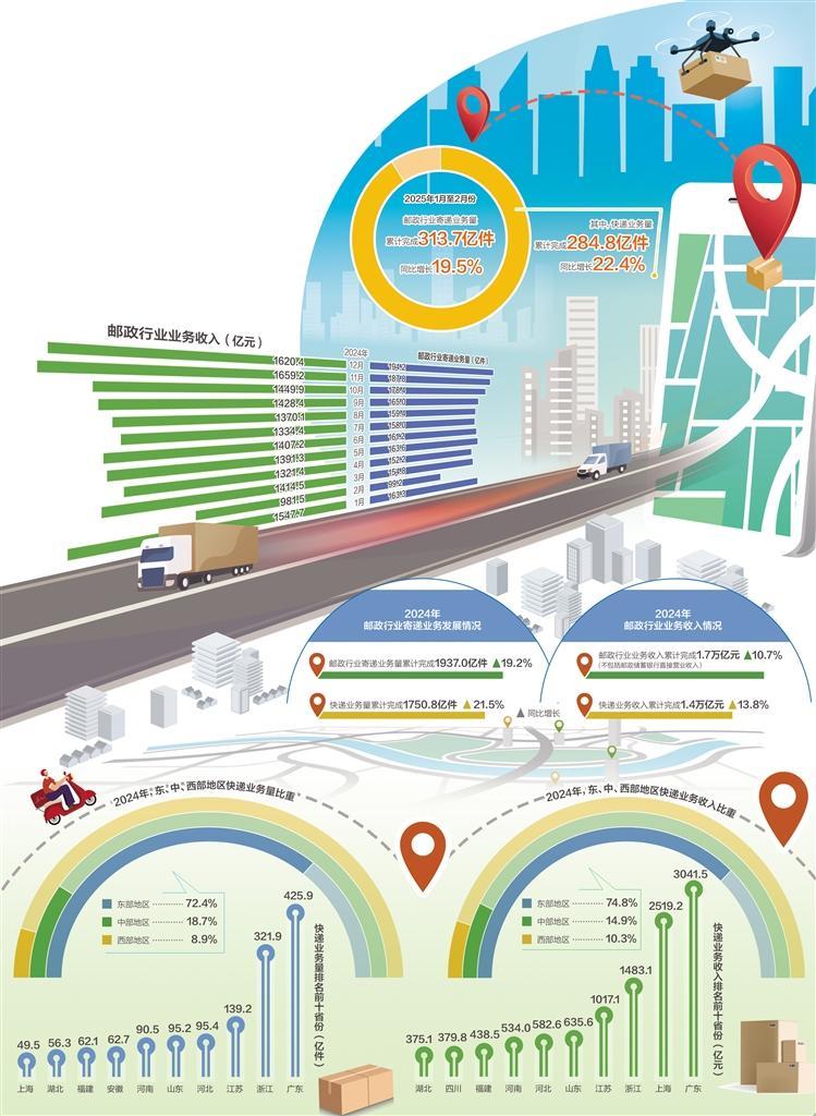 消費(fèi)是經(jīng)濟(jì)增長(zhǎng)的主引擎,快遞業(yè)務(wù)增長(zhǎng)源于消費(fèi)需求有效釋放。從中央經(jīng)濟(jì)工作會(huì)議強(qiáng)調(diào)大力提振消費(fèi)、提高投資效益,全方位擴(kuò)大國(guó)內(nèi)需求,到今年《政府工作報(bào)告》圍繞“大力提振消費(fèi)”作出工作部署,再到各級(jí)政府和有關(guān)部門(mén)加碼促消費(fèi),消費(fèi)市場(chǎng)活力持續(xù)攀升。2025年,消費(fèi)潛能將加速釋放,快遞業(yè)仍將保持穩(wěn)步上升態(tài)勢(shì),更多人會(huì)享受到便捷的寄遞服務(wù)。 (本文來(lái)源:經(jīng)濟(jì)日?qǐng)?bào) 作者:吉蕾蕾)