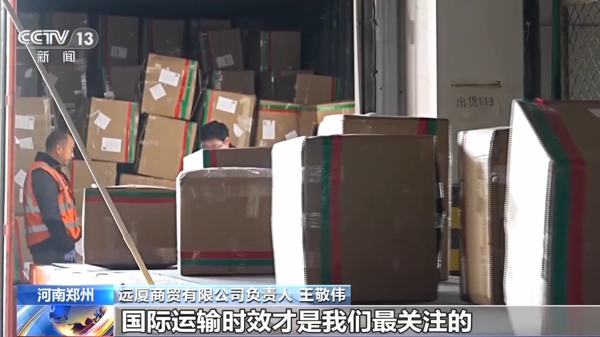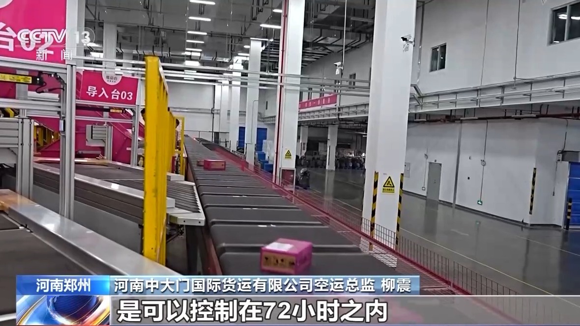 河南中大門國際貨運有限公司空運總監 柳震:從國內工廠提貨,到整個航班在境外口岸落地,我們整體的時效是可以控制在72小時之內,完全符合高效運轉的時效要求。