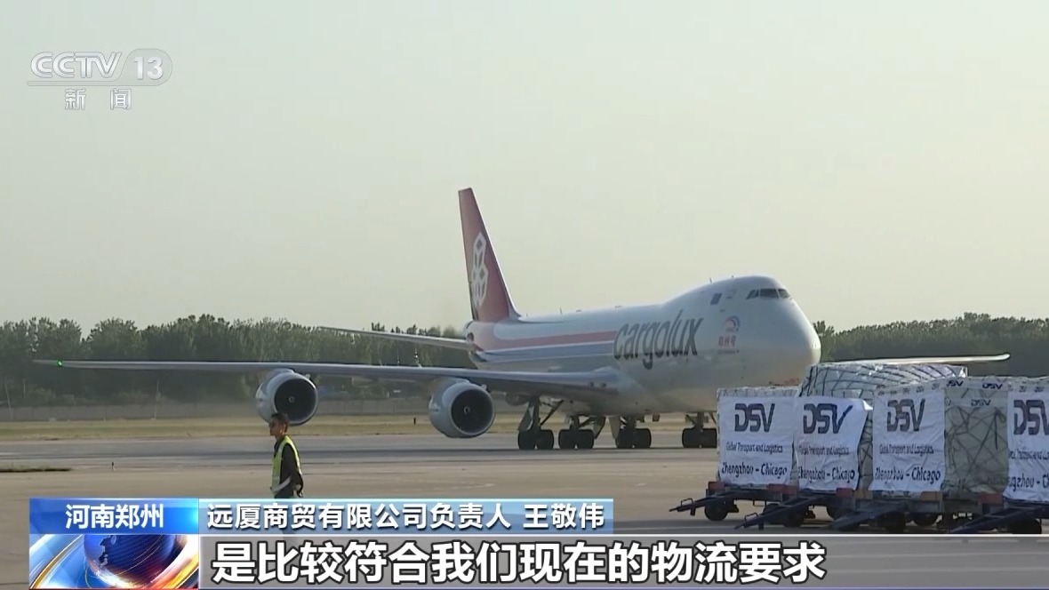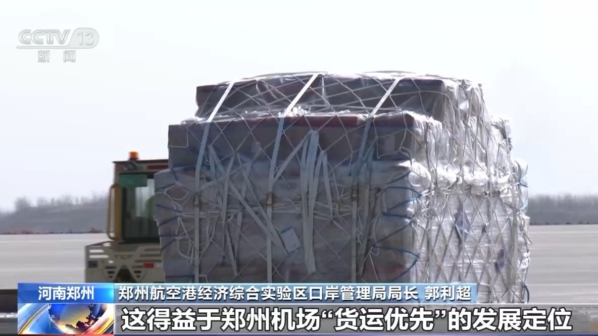 新朋友入駐,老朋友的業務也在拓展。記者采訪期間,一架從韓國飛來的全貨機剛剛落地,工作人員告訴記者,這架全貨機是通過“空空中轉”將電子產品等貨物從韓國首爾運抵鄭州,隨后再轉運至印度金奈。