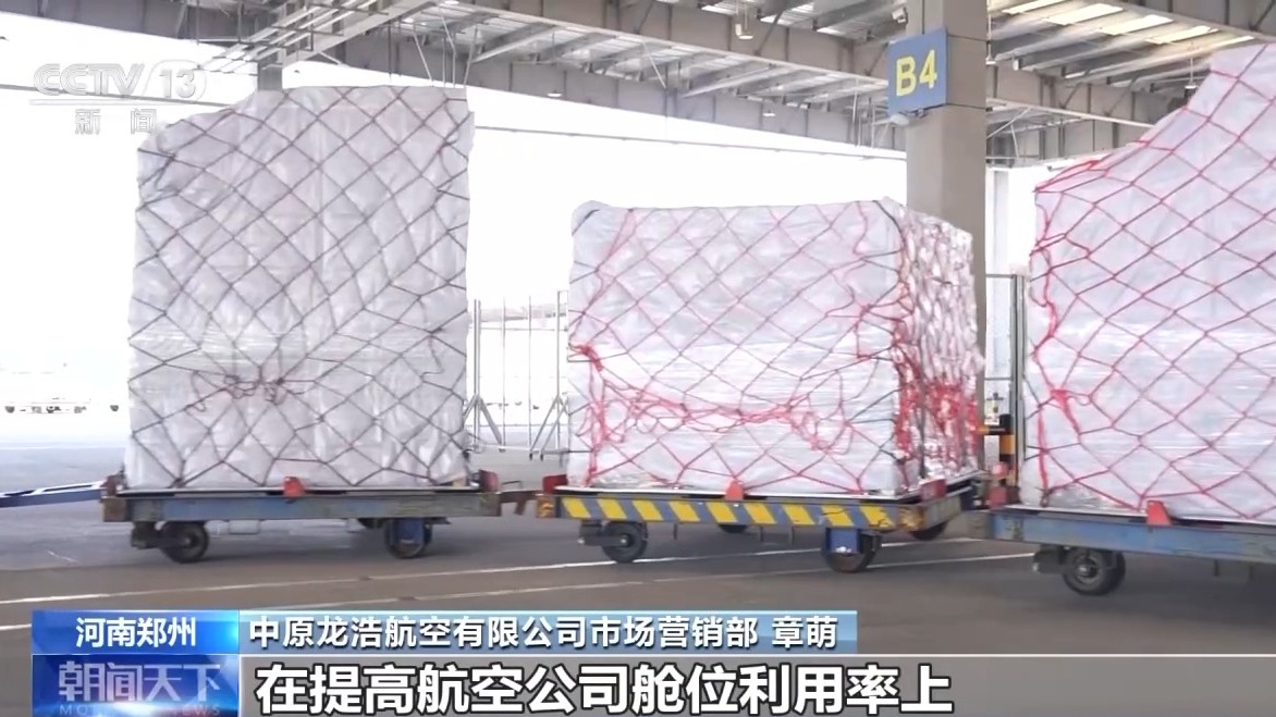 河南航空貨運發展有限公司貨運市場營銷部 李常亮:時效能夠提升3到6個小時,而且我們現在對中轉貨實行一次性收費,算下來相當于我們一公斤為客戶就節省了將近4毛錢的成本。