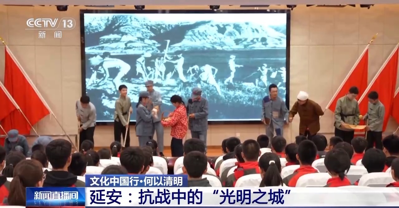 清明節前夕,在延安職業技術學院附屬中學,學生們通過一堂跨越時空的思政課,“走進”抗戰時期南泥灣大生產的現場。