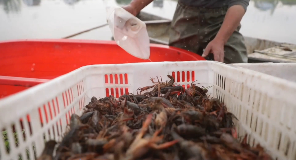 剛出水的小龍蝦被立即送往分揀中心,進(jìn)行質(zhì)量檢驗(yàn)和稱重分級。分揀線上,分揀工岳臘春戴著橡膠手套,指尖翻飛間完成了龍蝦的分級。岳臘春說,“我們是發(fā)月工資,一個(gè)月5000元,一天工作按貨的多少來定。”