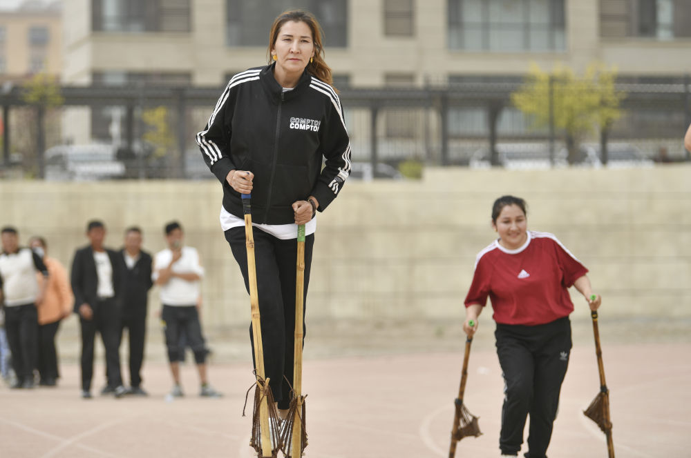 從上學時,柔鮮古麗就熱衷于參與各項體育活動。無論是籃球、排球還是最擅長的高腳競速,她總會擠出時間報名參賽。她說,體育就像一道光,多年來照亮了大漠邊緣的生活?!八粌H可以鍛煉身體,也能舒緩我在生活中遇到的壓力。”