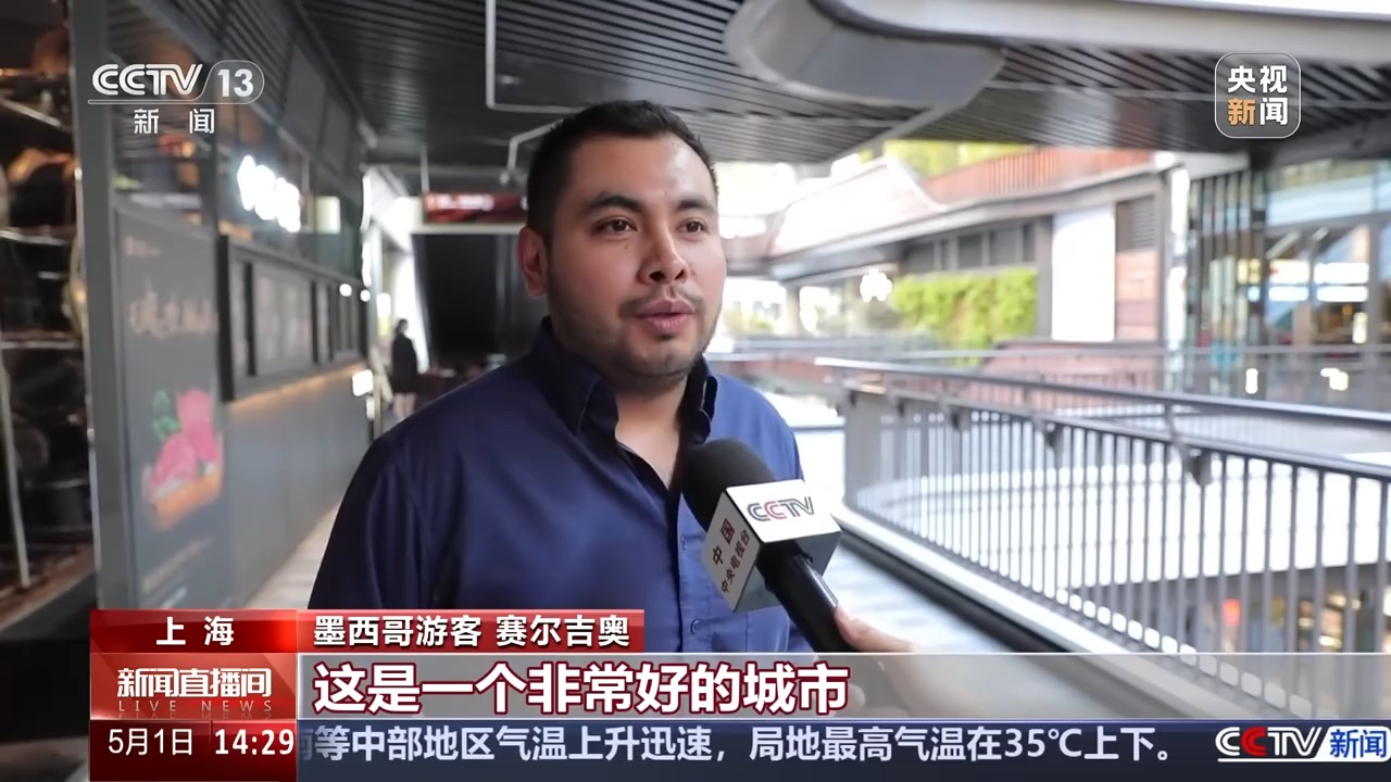 墨西哥游客 賽爾吉奧:事實上在這里你可以找到你想要的每一項技術,你可以找到很多你想象不到的東西,所以我相信,外國人來上海購物真的很好,這是一個非常好的城市。