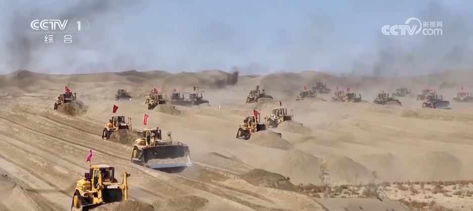 在位于塔克拉瑪干沙漠南緣的新疆昆玉市,7.38萬畝土地開發(fā)建設項目進入攻堅階段。上百臺裝載機、平地機在沙海中來回奔忙,原本丘壑縱橫的流動沙丘經(jīng)過連續(xù)作業(yè),逐漸變得平整,顯露出田壟的輪廓。