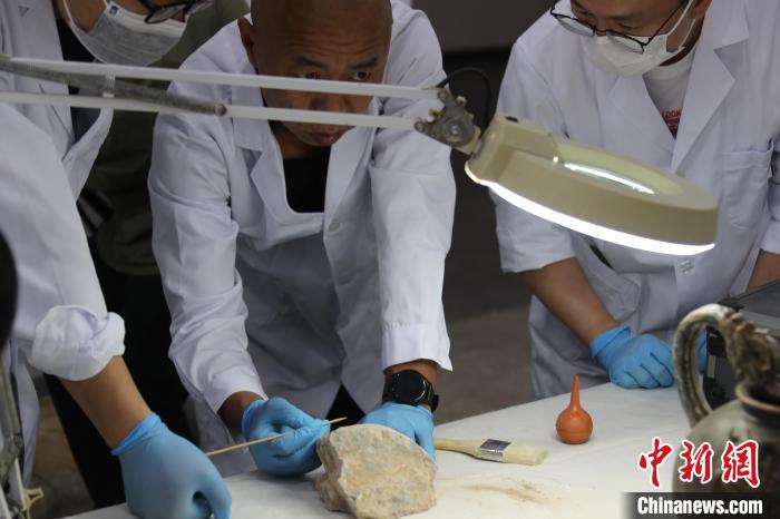 5月20日,河南洛陽,龍門石窟研究院的“文物醫生”對文物進行修復。 中新社記者 闞力 攝