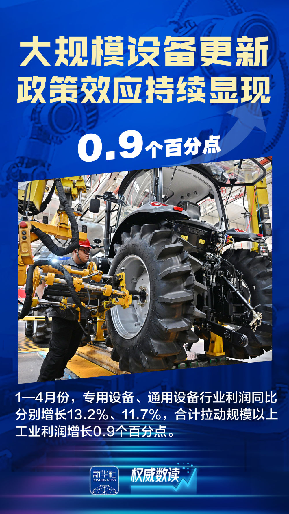 國家統計局、工信部等部門最新發布的數據顯示,今年前4個月,我國工業企業利潤增長加快、工業投資保持增長、裝備制造業引領作用突出、“兩新”政策效應持續顯現……一系列數據,充分展現出我國工業經濟的強大韌性和抗沖擊能力。
