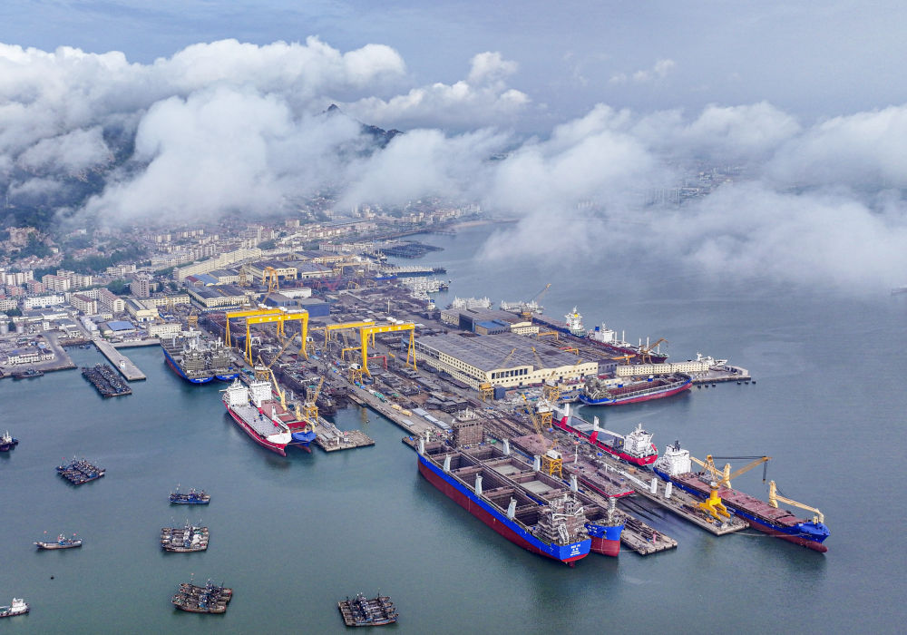 5月8日拍攝的山東省榮成市石島管理區修造船產業基地船塢(無人機照片)。新華社發(李信君攝)