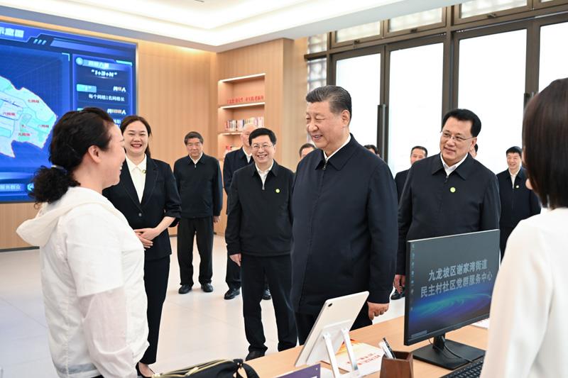 2024年4月22日,習近平總書記來到重慶九龍坡區謝家灣街道民主村社區,察看小區改造和便民服務情況,聽取提升基層治理效能、為基層減負情況介紹。