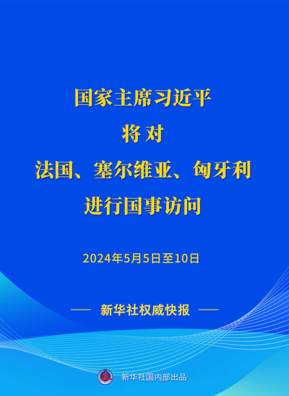 外交部發言人華春瑩4月29日宣布:應法蘭西共和國總統馬克龍、塞爾維亞共和國總統武契奇、匈牙利總統舒尤克和總理歐爾班邀請,國家主席習近平將于5月5日至10日對上述三國進行國事訪問。