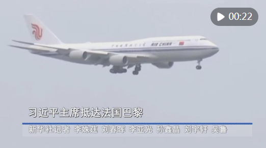 新華社快訊:當地時間5日15時40分許,國家主席習近平抵達巴黎,開始對法國進行國事訪問。