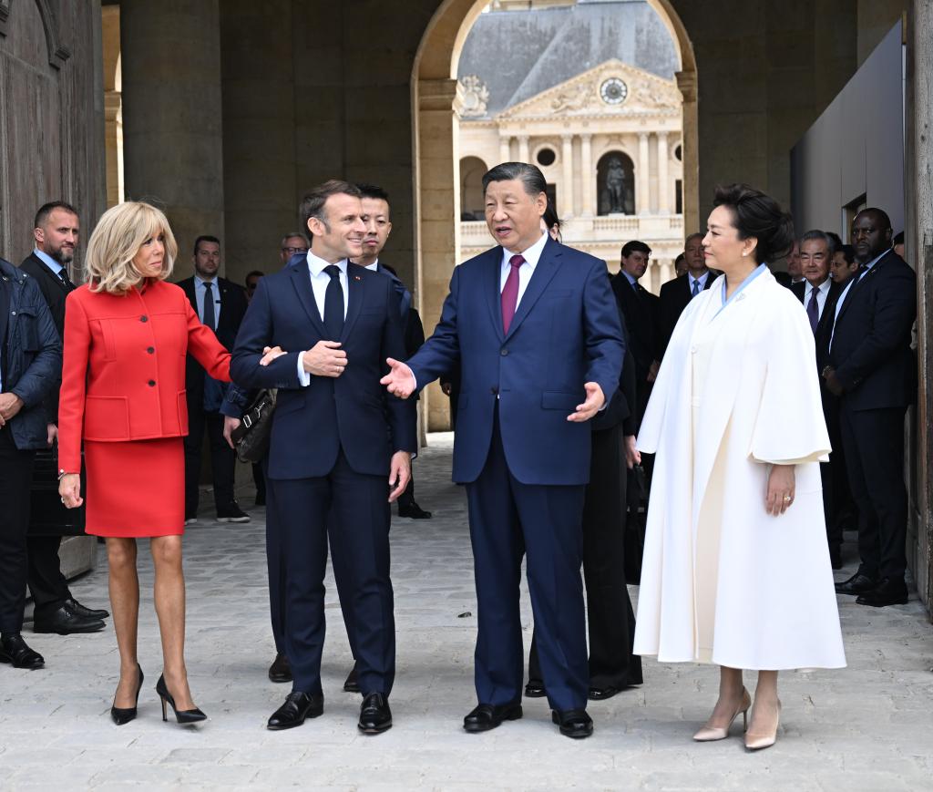 五月的巴黎,風和景明。塞納河畔,榮軍院金色穹頂熠熠生輝,五星紅旗和藍白紅三色旗迎風飄揚。