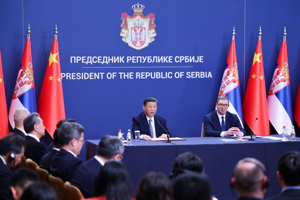 歡迎儀式后,國家主席習近平在貝爾格萊德塞爾維亞大廈同塞爾維亞總統武契奇舉行會談。