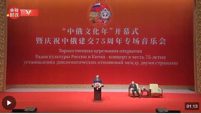 5月16日下午,國家主席習近平和俄羅斯總統普京在北京國家大劇院共同出席“中俄文化年”開幕式暨慶祝中俄建交75周年專場音樂會并致辭。