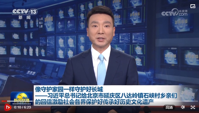 習(xí)近平總書記5月14日給北京市延慶區(qū)八達嶺鎮(zhèn)石峽村的鄉(xiāng)親們回信,強調(diào),長城是中華民族的代表性符號和中華文明的重要象征,凝聚著中華民族自強不息的奮斗精神和眾志成城、堅韌不屈的愛國情懷。勉勵鄉(xiāng)親們,帶動更多人了解長城、保護長城,把祖先留下的這份珍貴財富世世代代傳下去。習(xí)近平總書記的回信在社會各界引發(fā)熱烈反響。