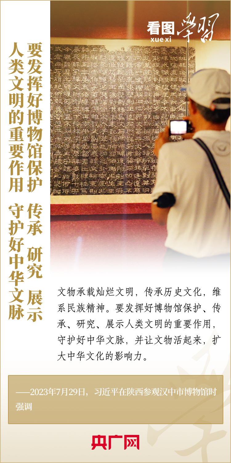 “一座博物館就是一所大學?!薄安┪镳^很重要,我從小就愛看博物館,小時候北京的博物館我差不多都看過了”“博物館建設要更完善、更成體系,同時發揮好博物館的教育功能”……在國內考察中,習近平總書記曾經多次走進當地博物館,了解館藏文物的收藏、保護、研究情況,對博物館建設和利用作出重要指示。一起來學習!