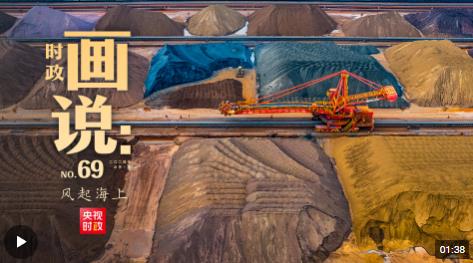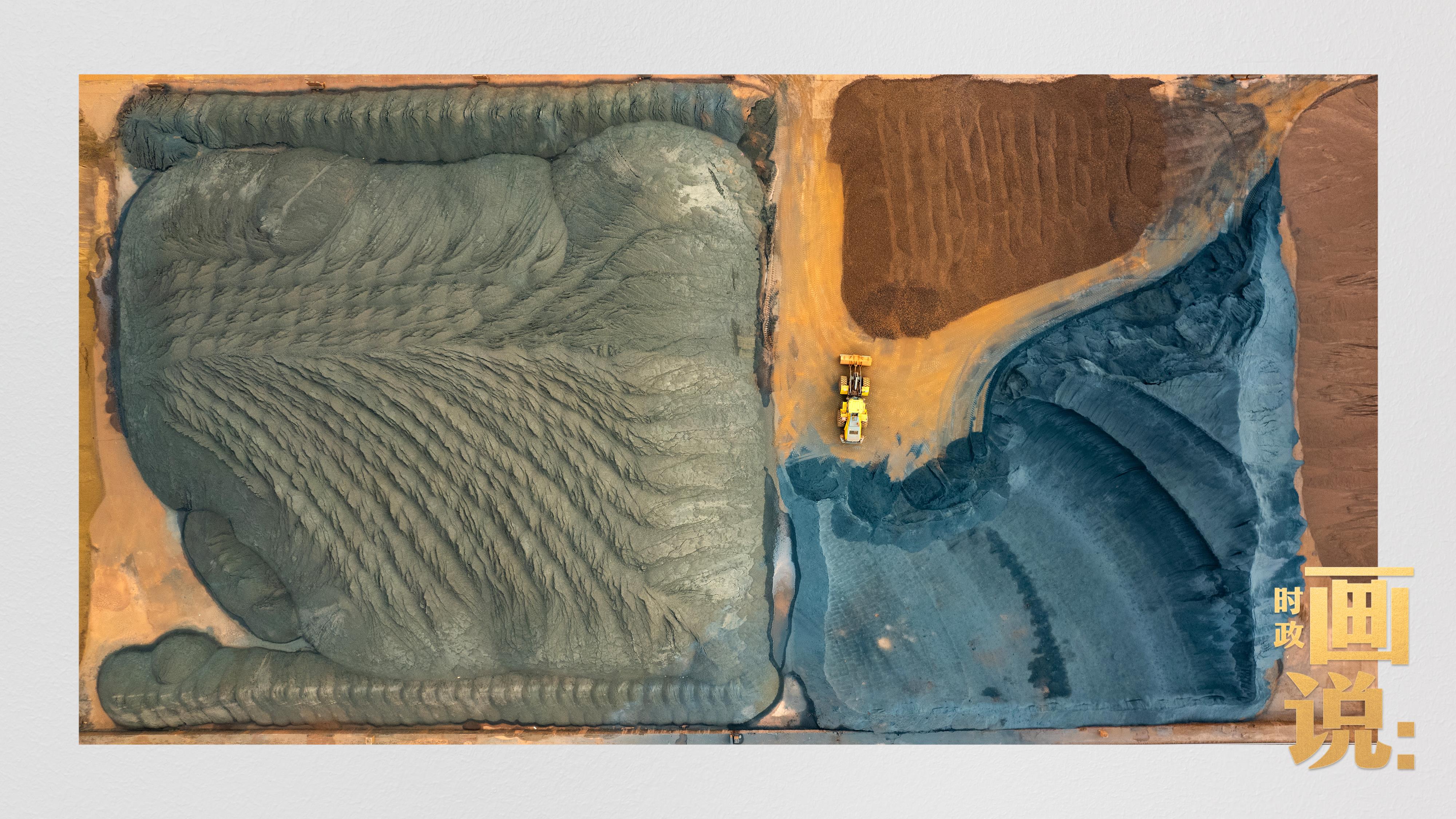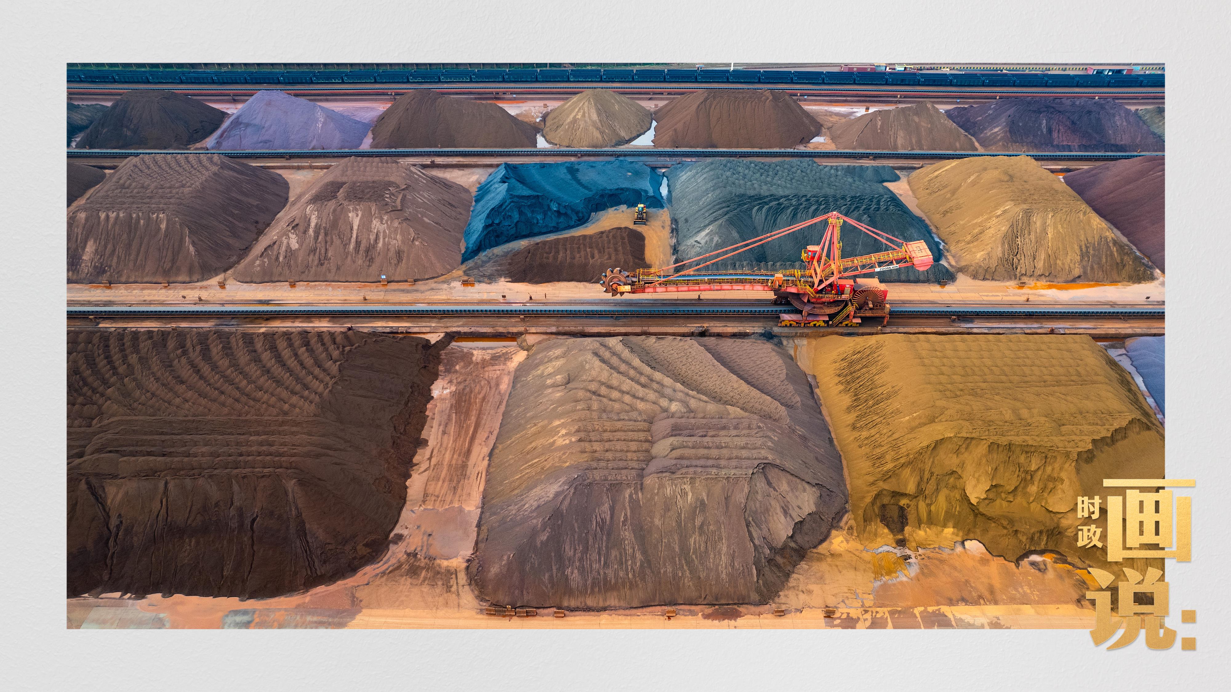 △港區內的礦石堆場整理堆放著五顏六色的各類礦石、礦砂,宛如油畫。