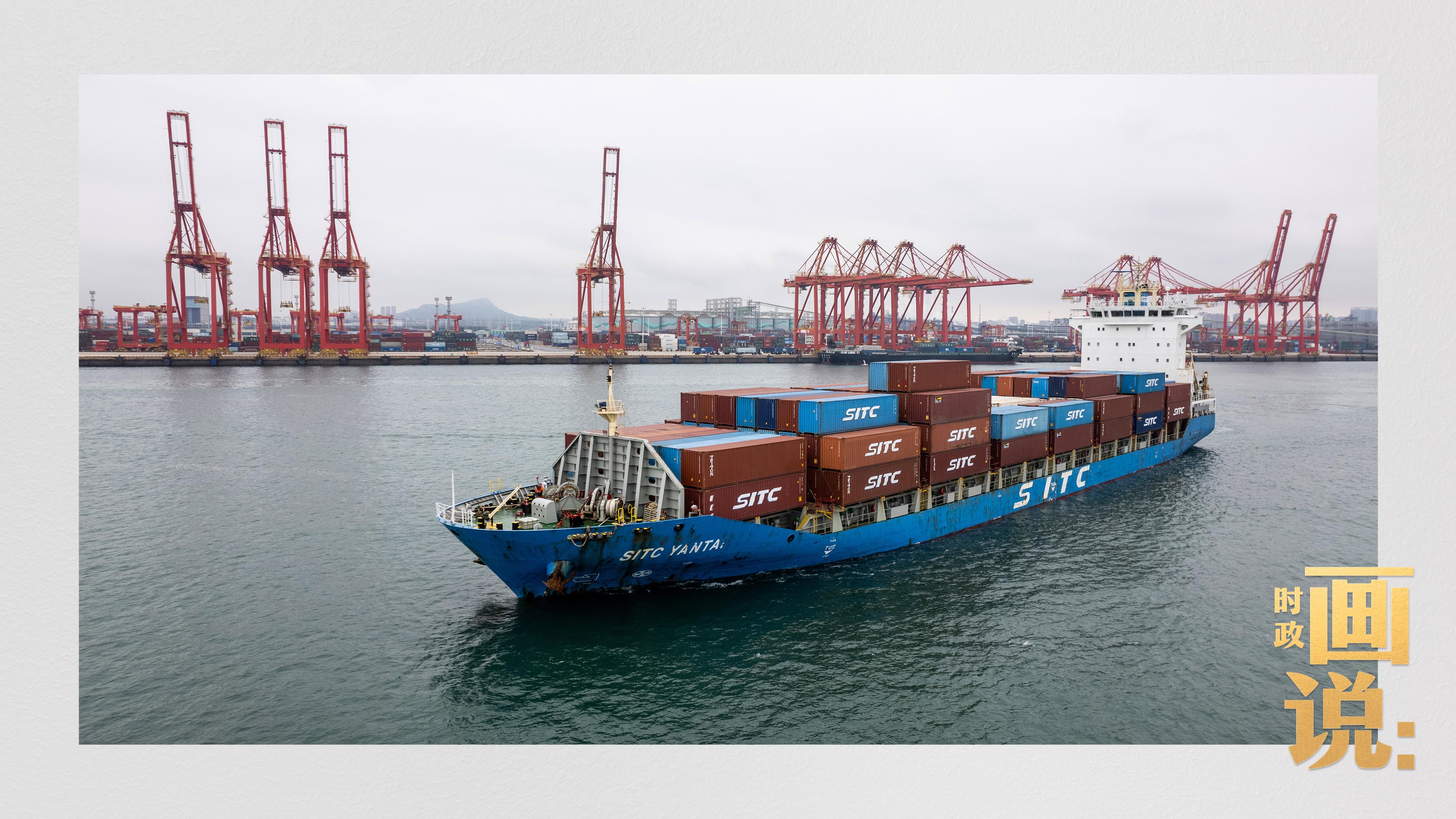 △一艘滿載的貨船正在駛離日照港石臼港區,奔向遠海。