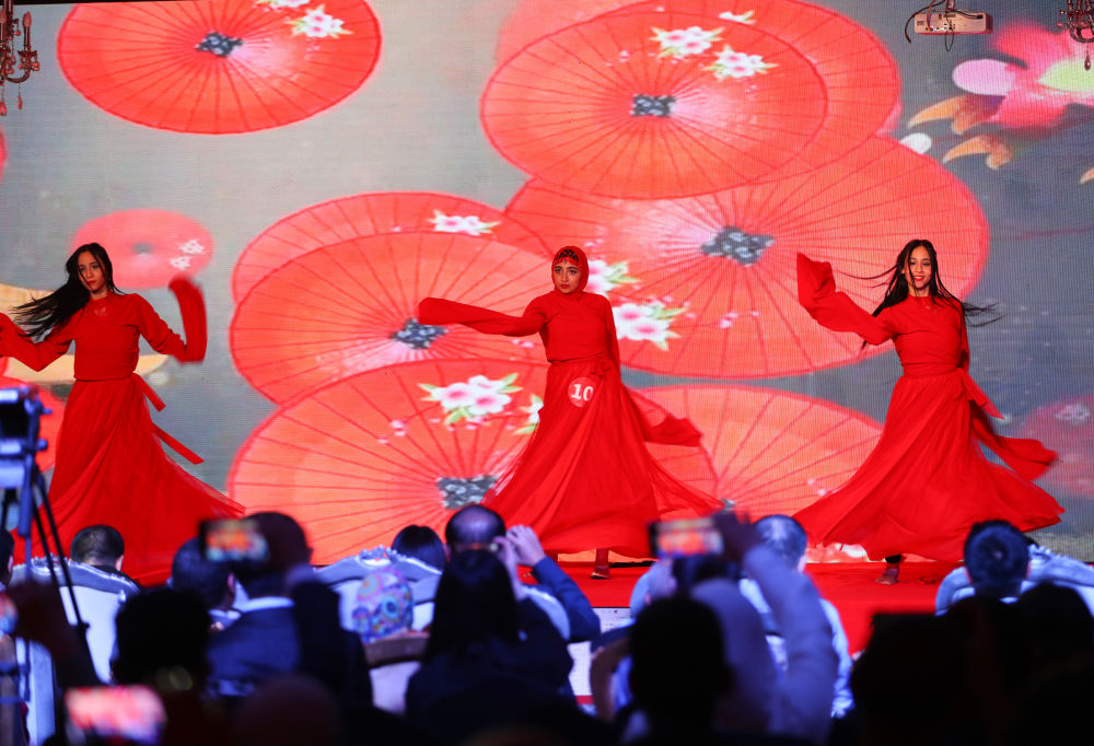 5月12日,參賽選手在埃及開羅舉辦的第23屆“漢語橋”世界大學生中文比賽埃及大區賽上表演才藝。