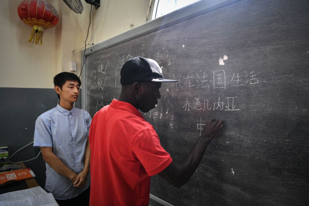 5月17日,在赤道幾內亞國立大學,當?shù)貙W生在孔子學院上中文課。