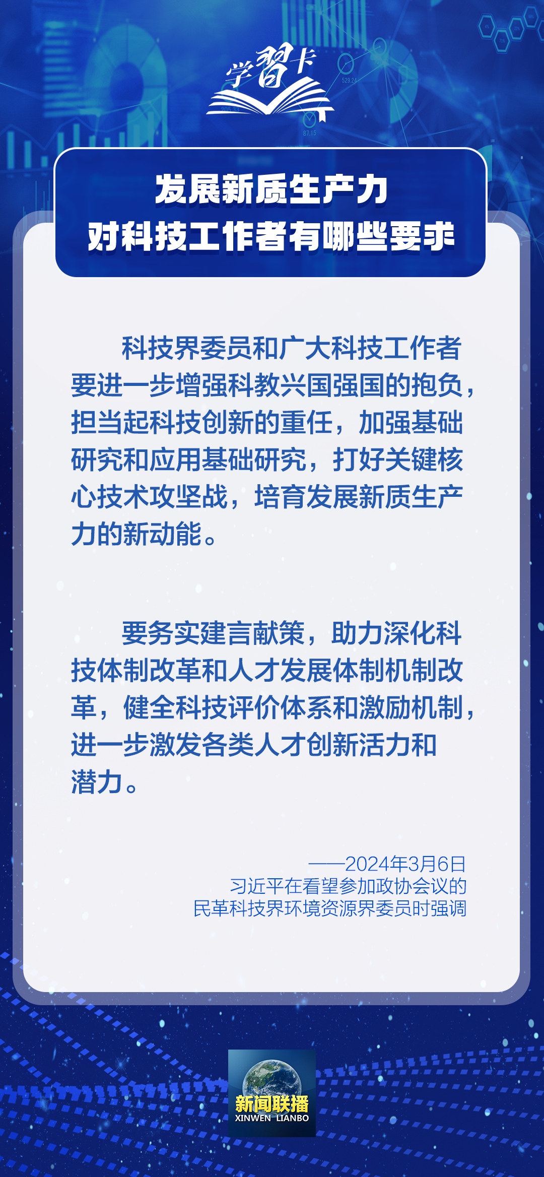 2024年5月30日是第八個“全國科技工作者日”。實現(xiàn)科技自立自強、建設世界科技強國,廣大科技工作者責任重大、使命光榮。培育發(fā)展新質(zhì)生產(chǎn)力的新動能,廣大科技工作者可以怎么做?習近平總書記的一系列論述指明了方向。一起學習↓↓↓
