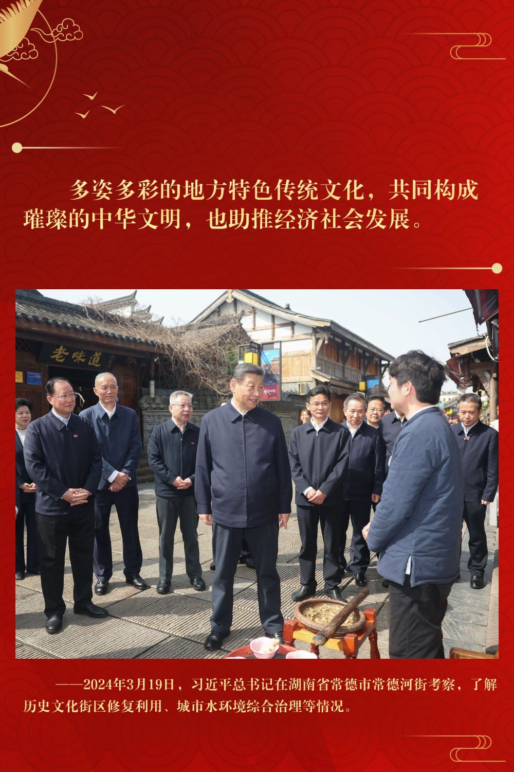 多年來,習近平總書記始終心系文化傳承發展,在地方考察期間多次調研古城老街、博物館等歷史文化地標,對歷史文化遺產保護和歷史文化傳承作出重要指示。