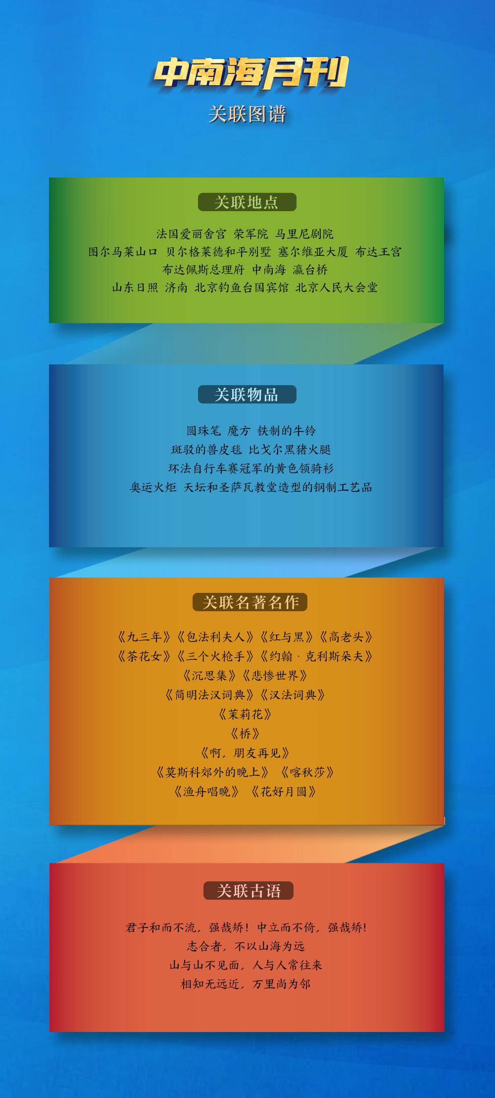 文明如水,為全球發(fā)展提供精神滋養(yǎng)。透過央視網(wǎng)“I學(xué)習”數(shù)據(jù)庫生成的關(guān)聯(lián)圖譜,一個個關(guān)聯(lián)地點、關(guān)聯(lián)物品、關(guān)聯(lián)名著名作等勾勒出清晰鮮明的文明互鑒印記。