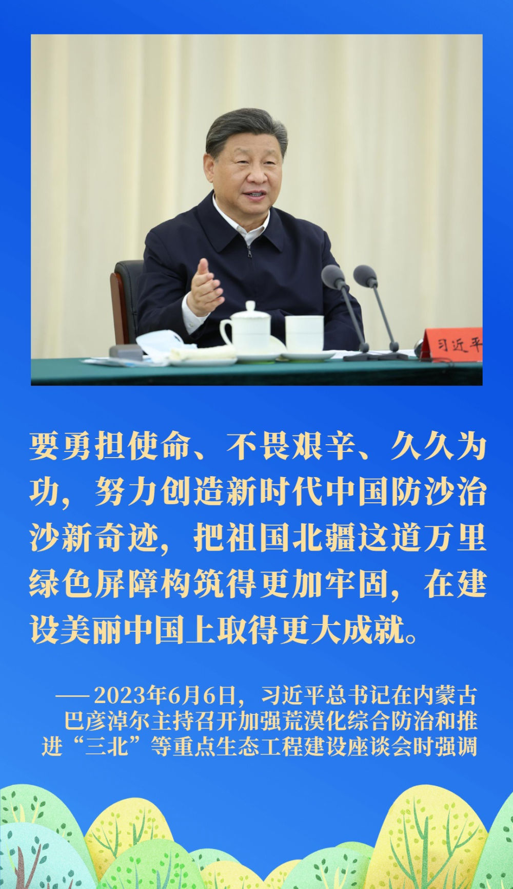 荒漠化是影響人類(lèi)生存和發(fā)展的全球性重大生態(tài)問(wèn)題。我國(guó)是世界上荒漠化最嚴(yán)重的國(guó)家之一。習(xí)近平總書(shū)記一直將防沙治沙牽掛在心,多次對(duì)荒漠化防治、推進(jìn)“三北”重點(diǎn)生態(tài)工程建設(shè)等工作作出重要指示。
