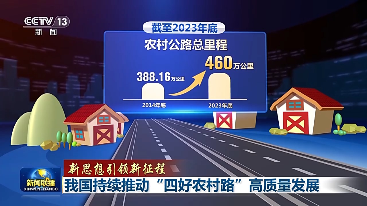 十年來,農村公路取得歷史性成就。累計投入農村公路建設資金達4.2萬億元,新改建農村公路約250萬公里,截至2023年底,農村公路總里程從2014年底的388.16萬公里增長到了460萬公里,農村公路覆蓋范圍、通達深度、管養水平、服務能力和質量安全顯著提高。