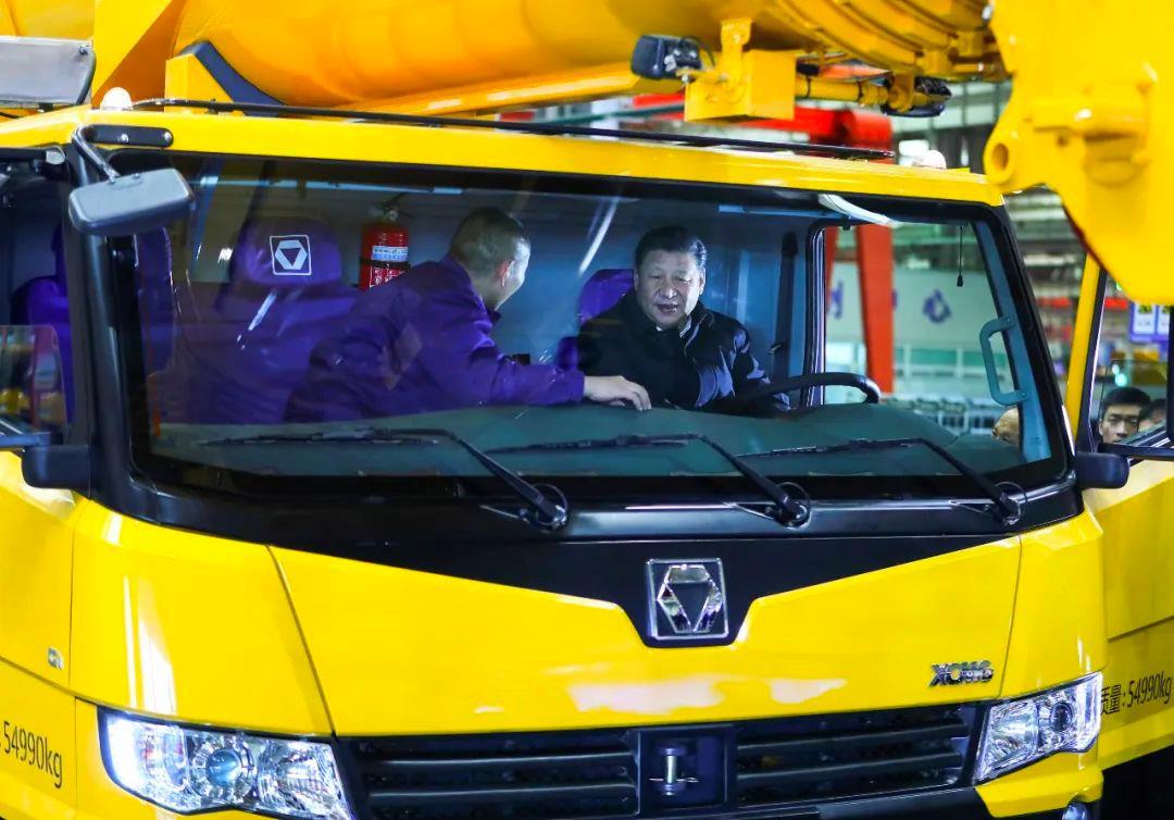 2017年12月12日,習近平總書記在江蘇徐州徐工集團坐進剛下線的XCA220型全地面起重機駕駛室,向技術人員詳細詢問起重機的性能、產量、價格等。