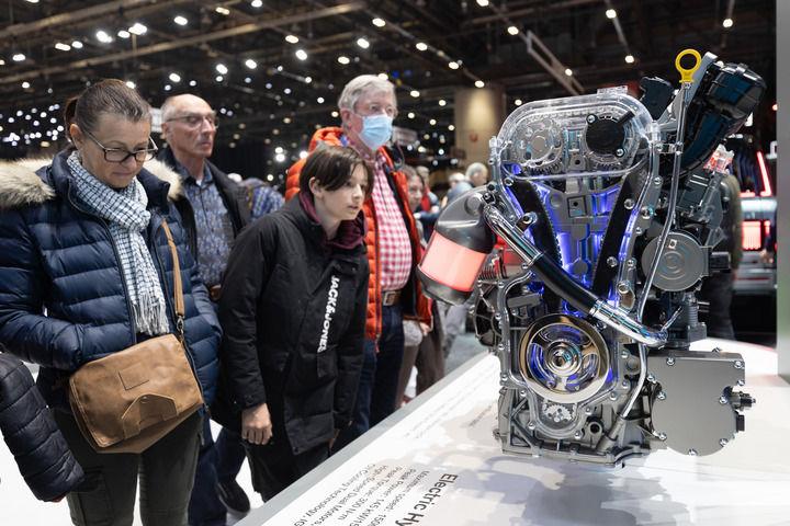 觀眾在瑞士舉行的2024年日內瓦國際車展上參觀比亞迪新款發(fā)動機。