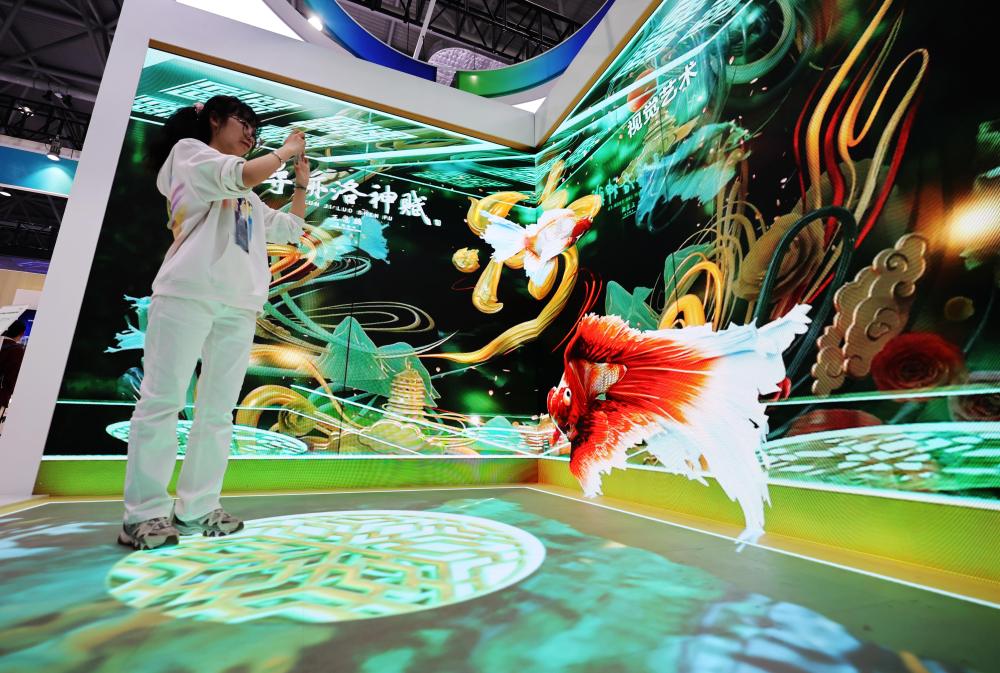 2024年4月1日,一名觀眾在安徽合肥舉辦的2024國際顯示技術(shù)大會(huì)上體驗(yàn)合肥京東方展出的一款裸眼3D快速拆裝折角屏。目前,新型顯示產(chǎn)業(yè)在安徽已形成全產(chǎn)業(yè)鏈布局。