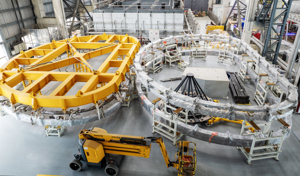 2024年5月27日在聚變堆主機(jī)關(guān)鍵系統(tǒng)綜合研究設(shè)施(CRAFT)園區(qū)內(nèi)拍攝的TF超導(dǎo)線圈生產(chǎn)線(無人機(jī)照片)。該研究設(shè)施將為未來中國聚變實(shí)驗(yàn)堆、工程堆的設(shè)計(jì)建設(shè),搭建參數(shù)高、性能全、功能完備的綜合性研究及測(cè)試平臺(tái)。