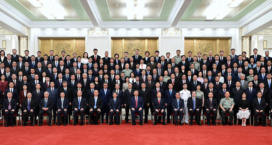 6月24日,全國科技大會、國家科學技術(shù)獎勵大會和中國科學院第二十一次院士大會、中國工程院第十七次院士大會在北京人民大會堂隆重召開。會前,習近平等領(lǐng)導同志親切會見國家科學技術(shù)獎獲獎代表,并同大家合影留念。新華社記者 謝環(huán)馳 攝