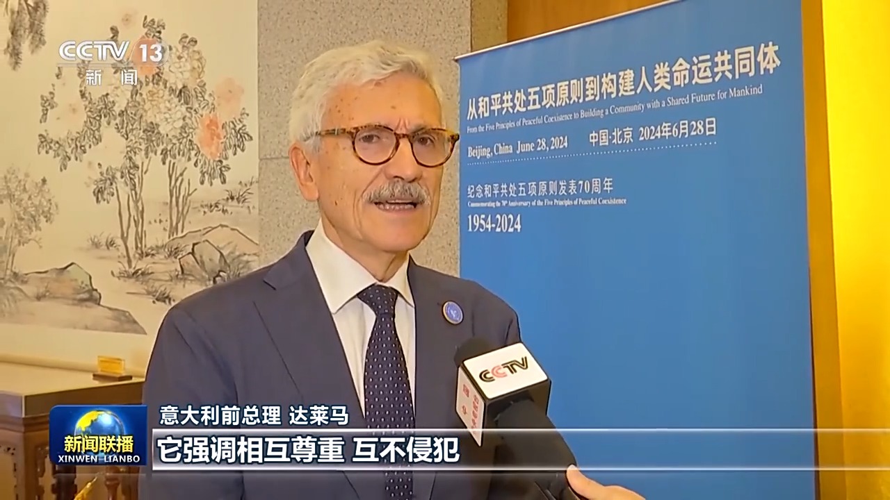意大利前總理 達(dá)萊馬:我們生活的世界正在經(jīng)歷一個(gè)非常困難的時(shí)期。一些殘酷的沖突正在發(fā)生。我認(rèn)為五項(xiàng)原則仍然是和平的基石,它強(qiáng)調(diào)相互尊重、互不侵犯,特別是不同社會(huì)制度的國家應(yīng)該和平共處。
